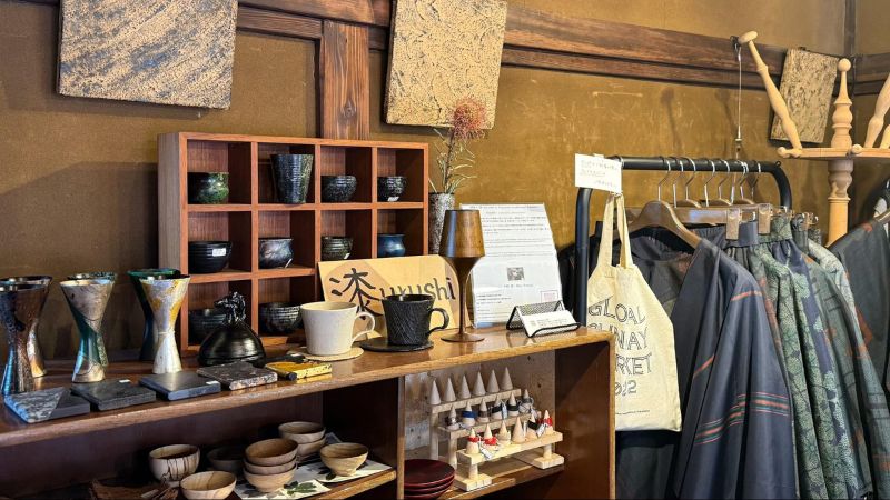 You’ll find a mix of handmade accessories, books, and Japanese-style items—almost like a mini gallery.