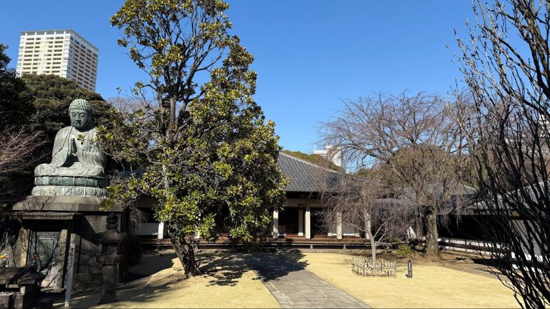 At the end of the cherry blossom path, you’ll find Tennoji Temple.