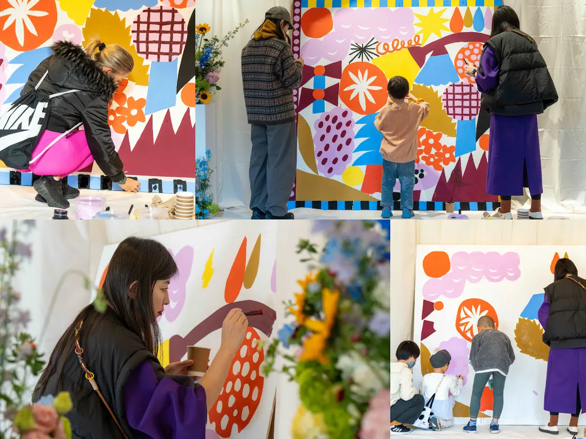 We were also honored to welcome Ayumi Takahashi, a painter active on the international art scene. During the event, she created a vibrant painting inspired by spring flowers. But the experience didn’t stop there — guests, staff, locals, and visitors were all invited to join in and paint together with the artist. It became a relaxed and joyful moment where people could exchange with the artist and take part in the creative process.