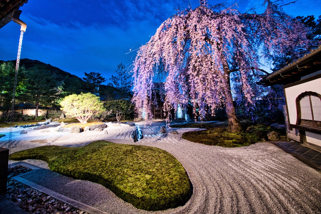If you see only one illumination in Kyoto, make it this one. Kodai-ji is famous for its projection mapping and the stunning reflection of cherry blossoms in the “Garyu Pond.”