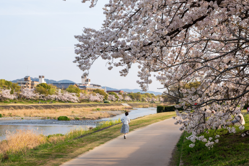 Ride back to the city center. Grab lunch by the Kamo River under the trees.