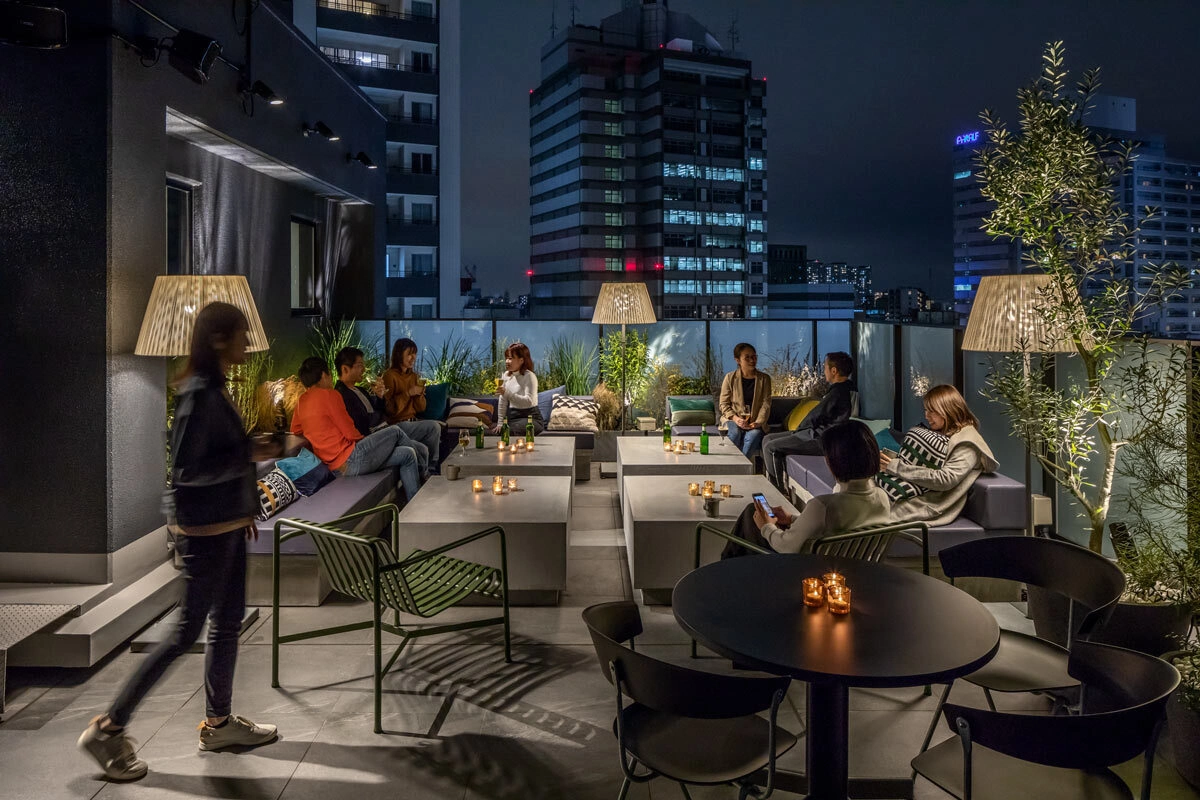 Not ready to sleep? Take your drink to the rooftop. The city lights of Kawasaki make for a different kind of “night view.”