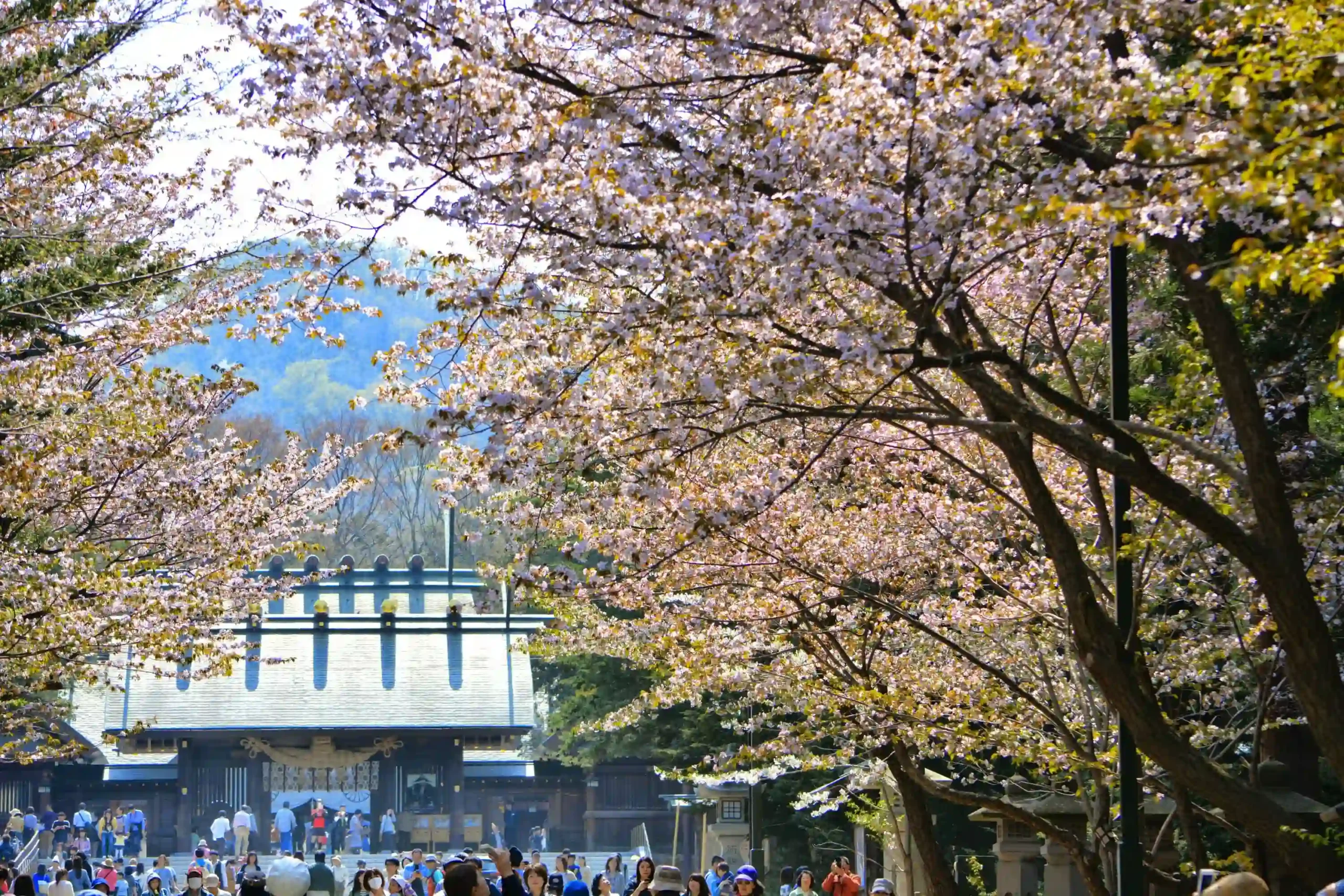 For a more traditional experience, head to Maruyama Park. It is adjacent to the magnificent Hokkaido Shrine. Seeing the cherry blossoms against the backdrop of the shrine architecture and the mountains is truly spiritual.