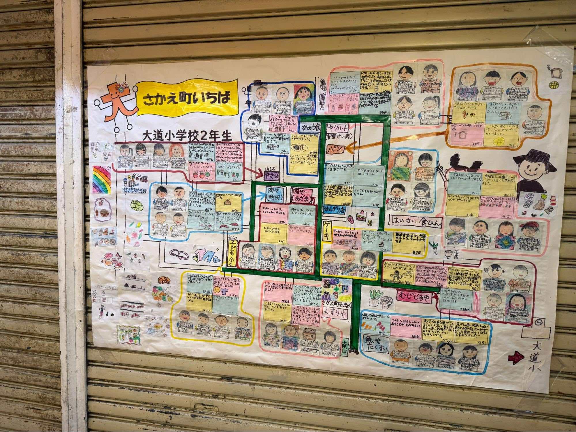 迷路のような市場の路地は、一歩足を踏み入れるとどこか懐かしい昭和の面影が残り、まるでタイムスリップしたかのよう。初めて訪れる方は少し迷ってしまうかもしれませんが、そんな時は近所の小学生が書いた「市場の地図」を探してみてください。栄町市場の魅力が詰まった可愛らしい地図は、地域の人々の温かさが伝わるとっておきのガイドになります。