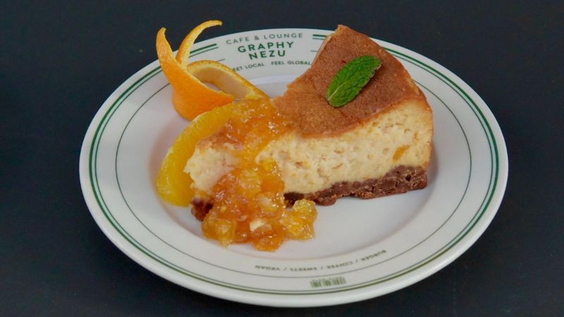 甘夏チーズケーキ:チーズのコクに甘夏の果実のさっぱりとした味をブレンド、そこにアペロールを加えることでまろやかな仕上がりとなった1品。