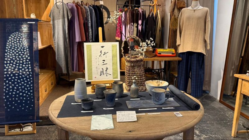 古民家を活かした店内には、陶磁器や和紙雑貨、オーガニック精油、手染めのテキスタイル、手ぬぐいや洋服など、日本の手仕事を感じられるアイテムが並びます。
