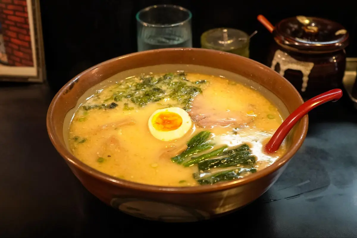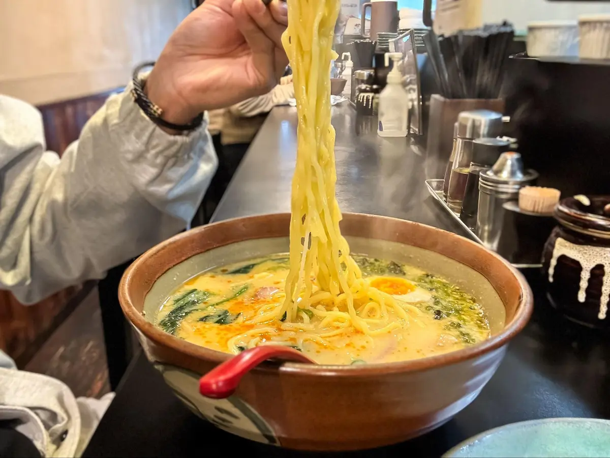 特徴: ひと口飲めば違いがわかる、白味噌ベースの超濃厚でコク深いスープが自慢 。そのスープに負けないモチモチの太ちぢれ麺が、旨味をたっぷりと持ち上げてくれます 。体の芯から温まるので、寒い日の夜や、一日中歩き回ってエネルギーをしっかりチャージしたい時にぴったりです。