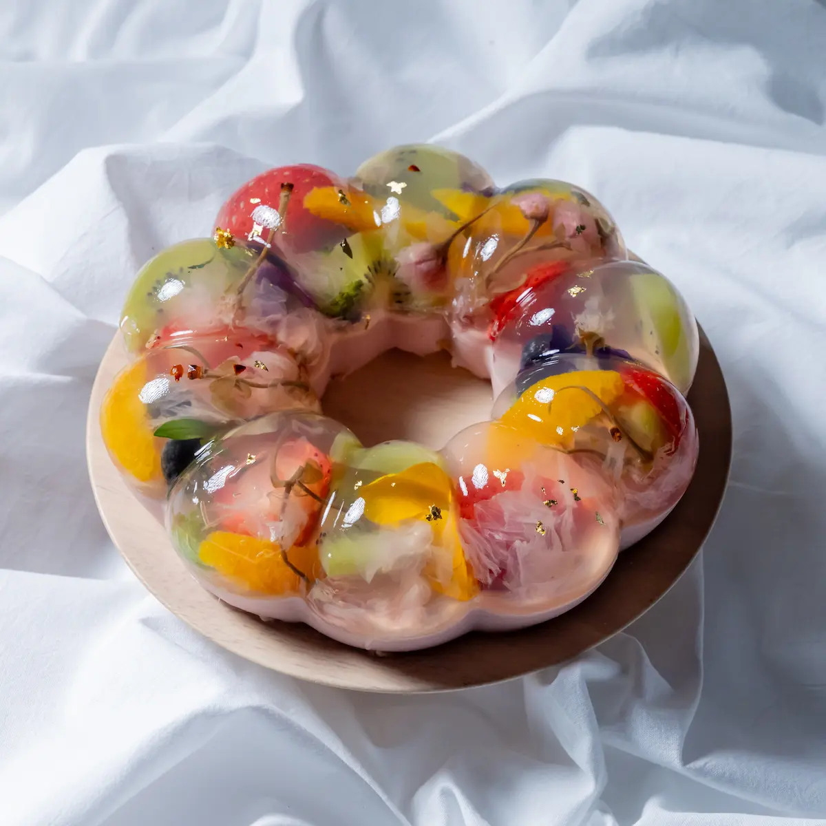 特別な日を彩るケーキには、あまおうのババロアをベースに、桜とたっぷりのフルーツをゼリーに閉じ込めた「桜とあまおうのブーケケーキ 」が登場。まるで花束をそのままケーキにしたような華やかさは、大切な人と過ごすひとときをより一層特別に演出します、2名様からシェアして楽しむのにぴったりなサイズで提供いたします。(ケーキサイズ:6号)