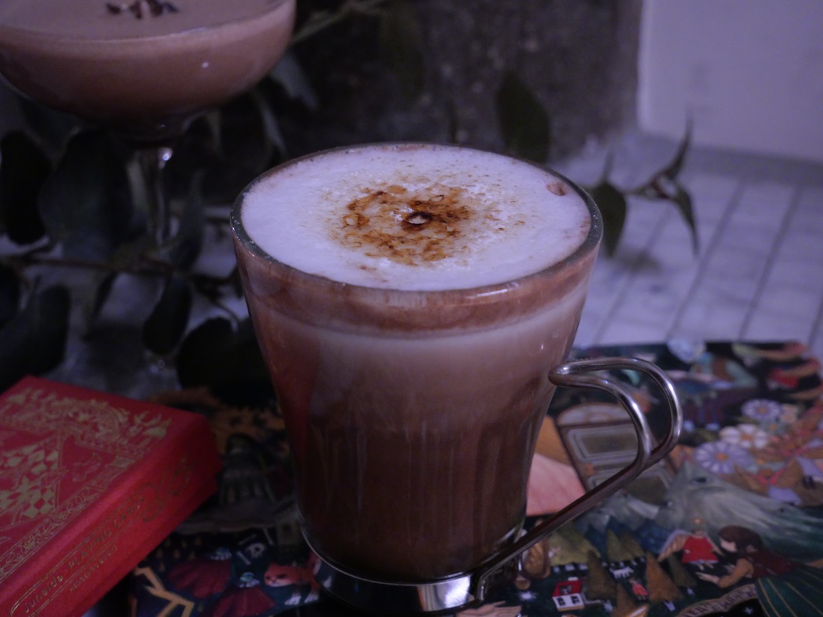 真っ白な雪化粧をしたような見た目の「ホワイトバレンタイン(画像左)」は、チョコレートリキュールの芳醇な味わいに、オレンジの酸味が加わりオレンジショコラを食べているかのような一杯です。