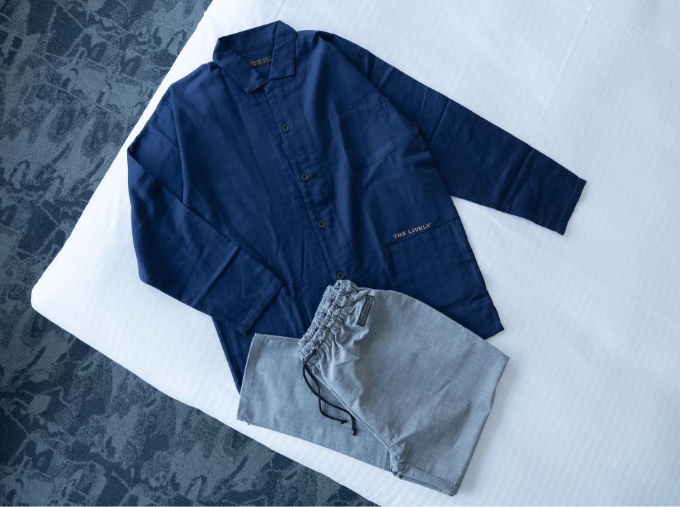 客室には、歯ブラシ、スリッパ、THE LIVELY 大阪本町のオリジナルパジャマをご用意しております。