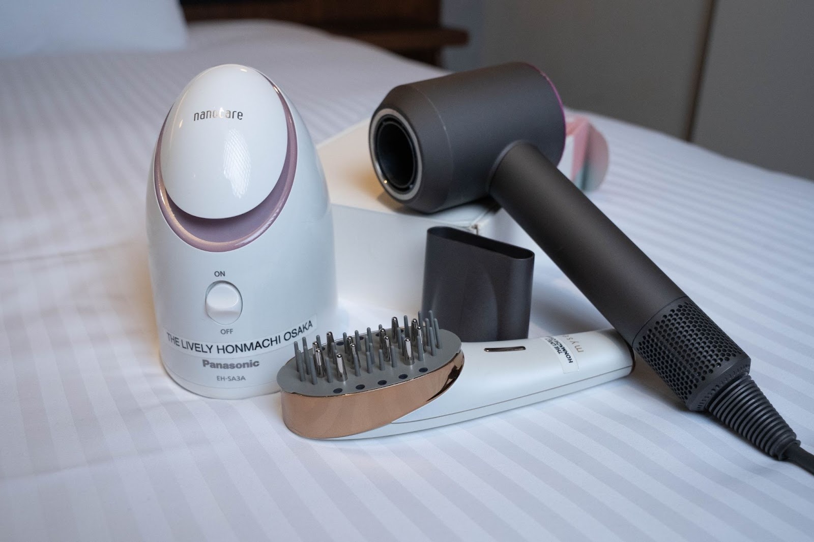DysonのドライヤーやRefaなど、人気の高機能美容アイテムを旅行中に“じっくりお試し”できる贅沢さ。